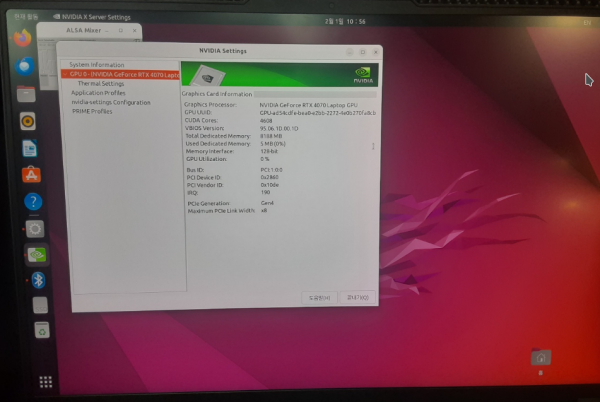 - nvidia 4070 드라이버 지원은 원활하나, 소리 부분이 작동하지 않으며, 블루투스 구성으로 소리문제 해결함.