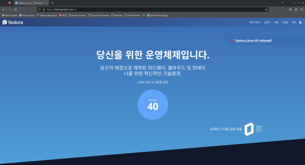 페도라 40이 출시되었습니다. 해당 출시는 fedoraproject.org/ko에서 확인하고 내려받을 수 있습니다.