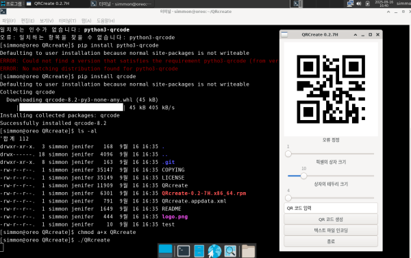 해당 사용 OS는 F42 - 페도라 리눅스 KDE 환경 / 필요 꾸러미 python3-qrcode-8.0-3.fc42.noarch