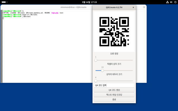 * 한글화한 QR 코드 생성용 프로그램입니다.
